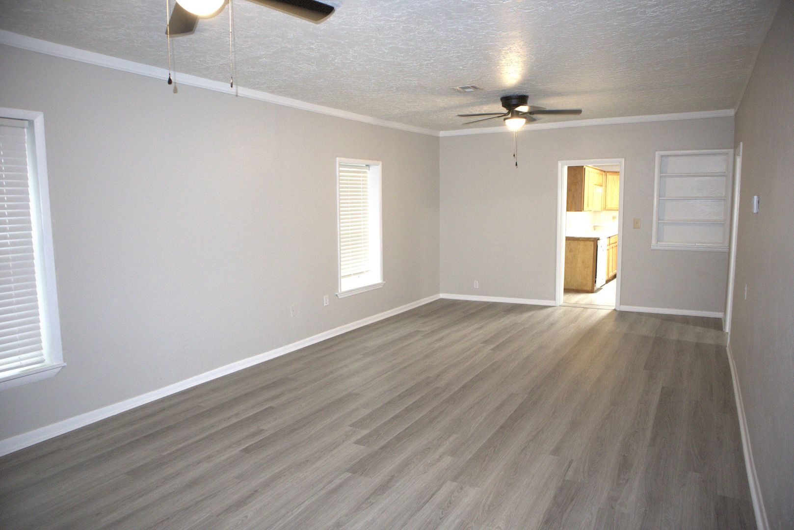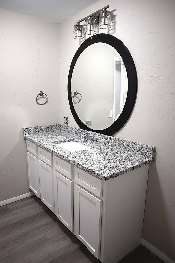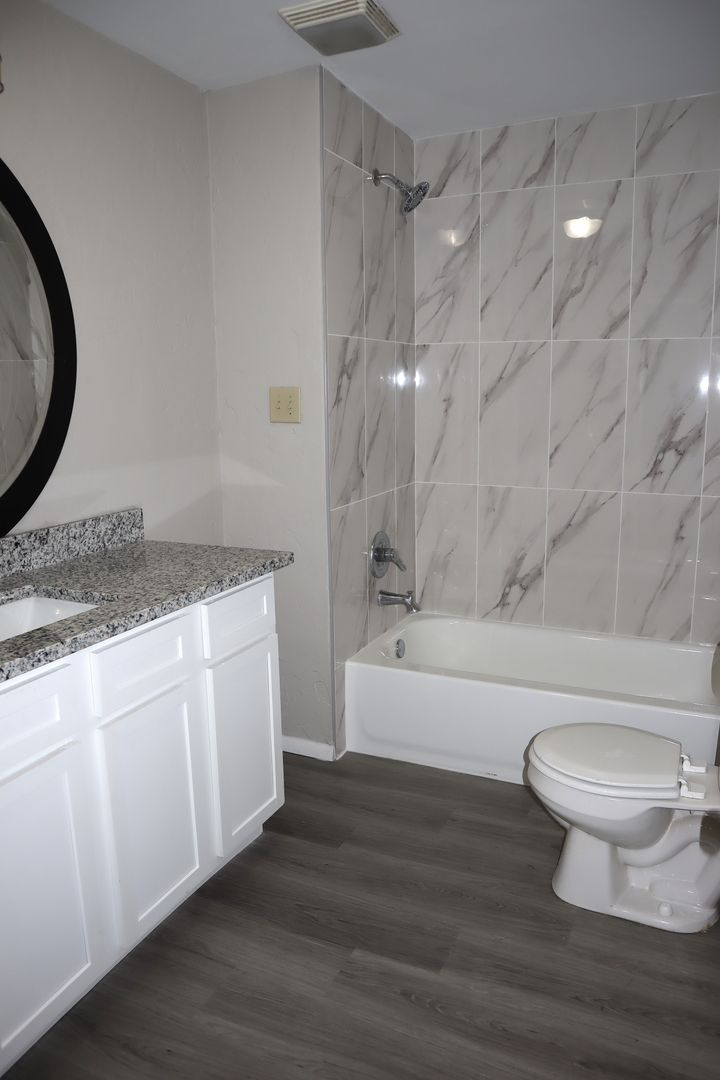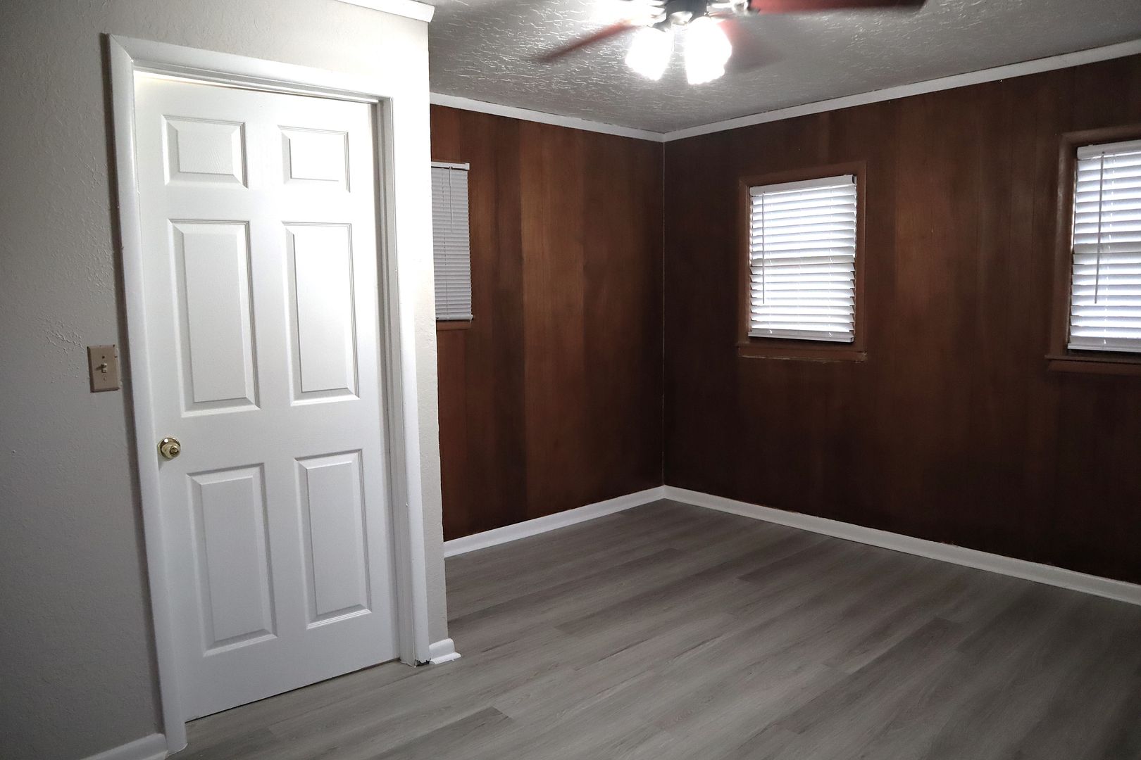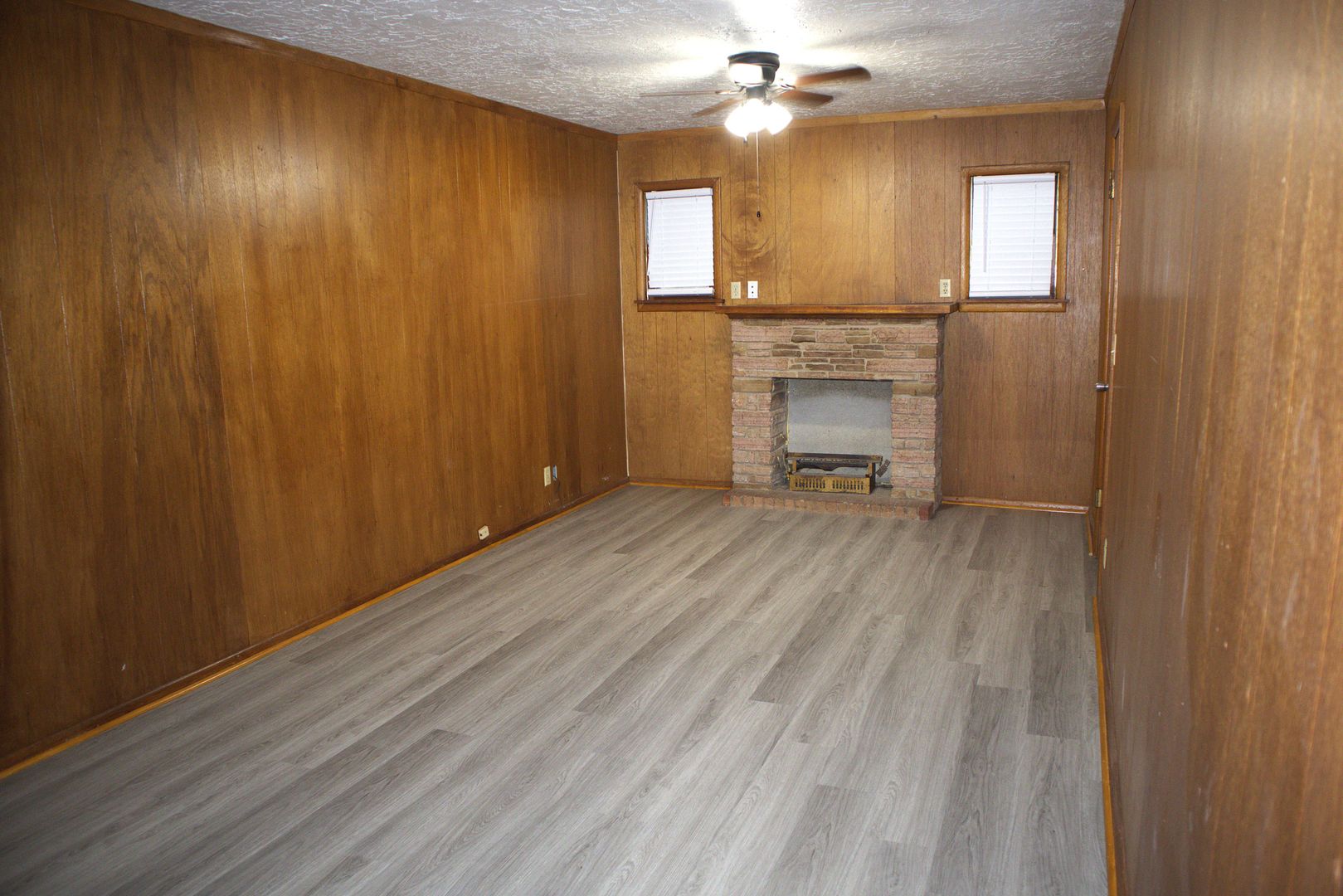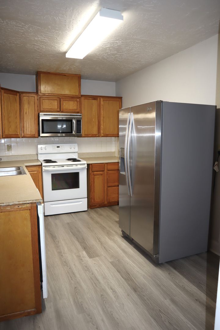 This 4 bedroom, 1.5 bath home has a charming covered front porch and a great floor plan that has a few options This is a true 4 bedroom home. But if you prefer, you can use it like a 3 bedroom and let the smaller room with the faux fireplace be an office. Or you can also use it as a 3 bedroom and have two very spacious living areas. Any way you decide to use it, you have over 1,740 sq. ft. of living area! The most recent updates include fresh interior paint on all the walls and trim and new luxury vinyl plank flooring throughout. There is no longer any carpet in this home. The full bathroom has been completely renovated with a new tub and tile surround, new vanity with granite counter and undermount sink. The kitchen has a stainless refrigerator, an electric stove with built-in microwave and a dishwasher. Central gas heat and central electric air updated in 2018. 2 of the rooms have charming faux fireplaces. The laundry room opens to the chain link fenced back yard. The exterior of the house and garage have also been painted. The detached garage/shop has space for one or two small vehicles, but does not have clearance for a pickup. It's a great spot for projects or crafts. Tenants are responsible for maintaining the yard. Water/sewer/trash are included with the rent on this property.