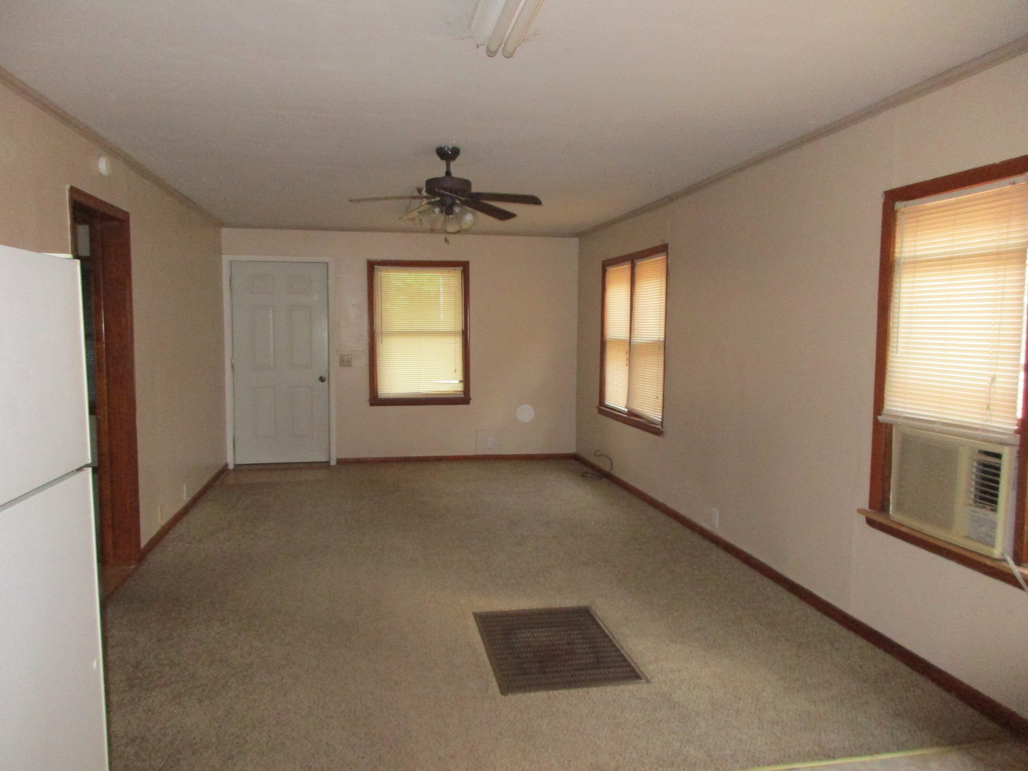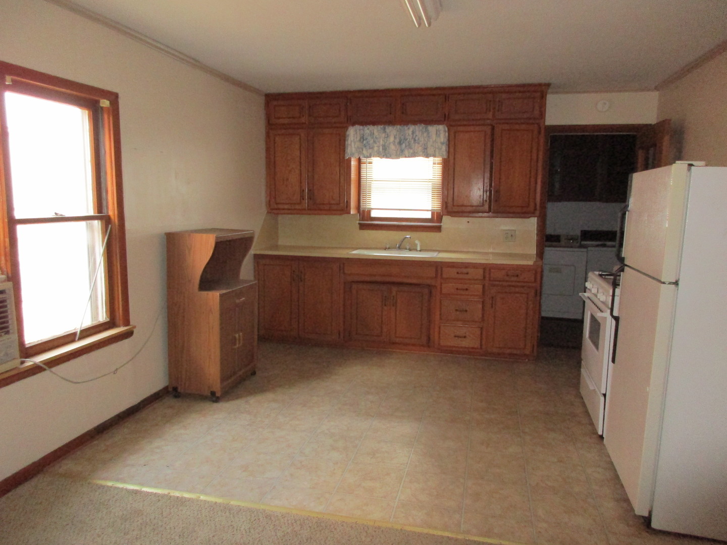This cozy 2 bedroom 1 bath home is located on the alley behind the house at 215 E Tom Stafford ( Just East of State Street) It has updated flooring in the living area and an open concept floor plan with a very open living room and kitchen. The kitchen is equipped with a refrigerator and stove. The laundry room includes a washer and dryer. The bathroom has a sink, commode and shower. There are two bedrooms similar in size. Each bedroom and the living room have window unit air conditioners during the summer months. Heat is provided by a wall panel gas furnace. Full details, a place to apply online (no fee) Just go to www.brandhorstrentals.com